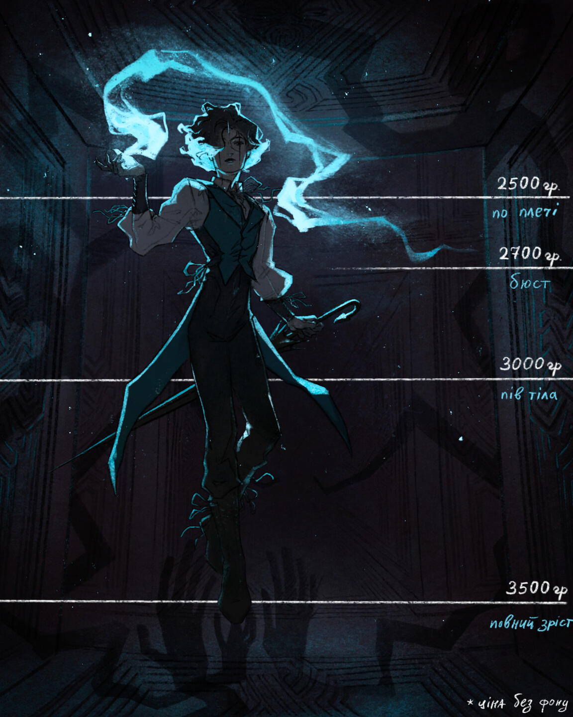 (Ви не можете видавати його за намальований вами)✨Ви не можете редагувати мою роботу (крім випадків редагування під друк і додавання тексту, якщо це обкладинка або плакат)✨Я можу виставляти роботу в своє портфоліо (якщо вона не була приватною)✨Я можу відмовитися від виконання замовлення з будь-якої причини, до початку його виконання і передоплати✨Ви не можете використовувати мою роботу для навчання ШІ✨Деталі використання в комерційних цілях обговорюються ДО початку роботи над замовленням